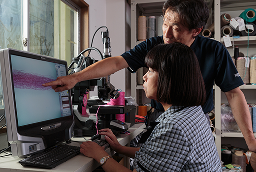 豊かな実績と、その中で培われた高い技術力やノウハウを生かし、お客様のニーズに幅広く応えられるよう、強度や色彩の豊かさを兼ね備えた高品質の原糸を提供しています。